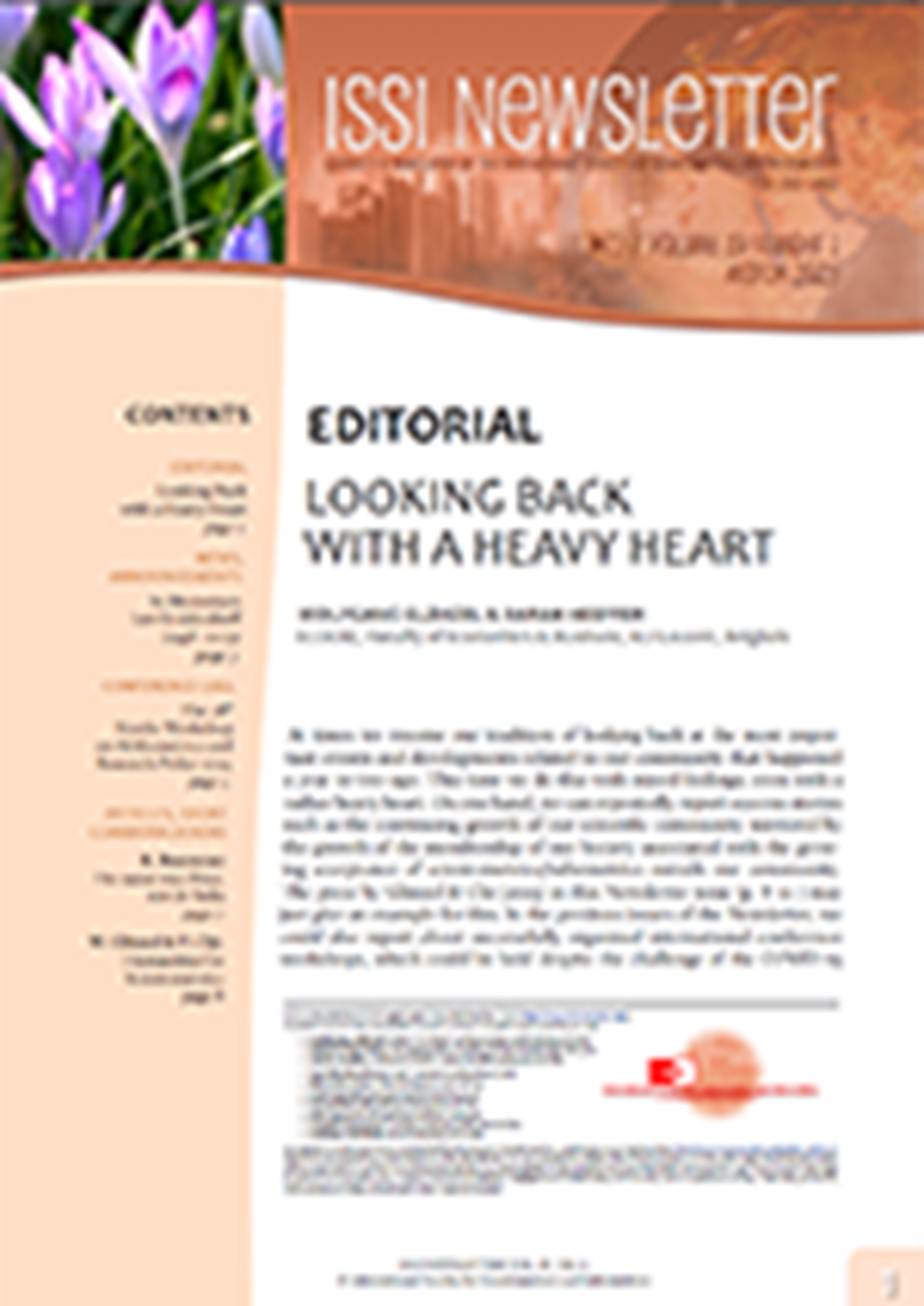We are glad to inform you that number 73 of the ISSI Newsletter has come out.