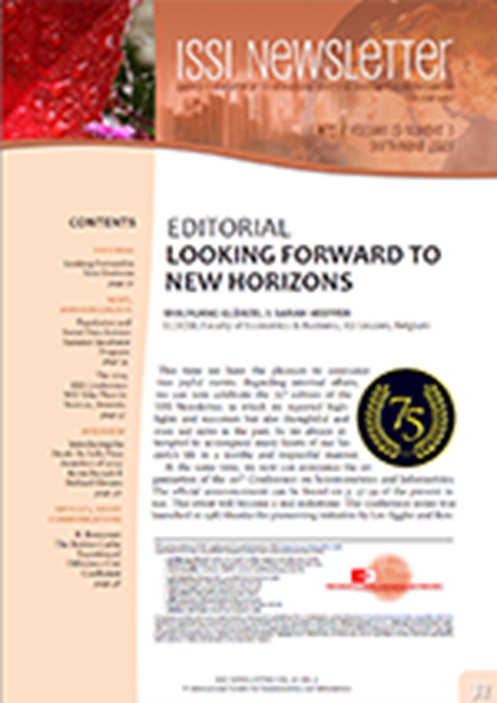 We are glad to inform you that number 75 of the ISSI Newsletter has come out.