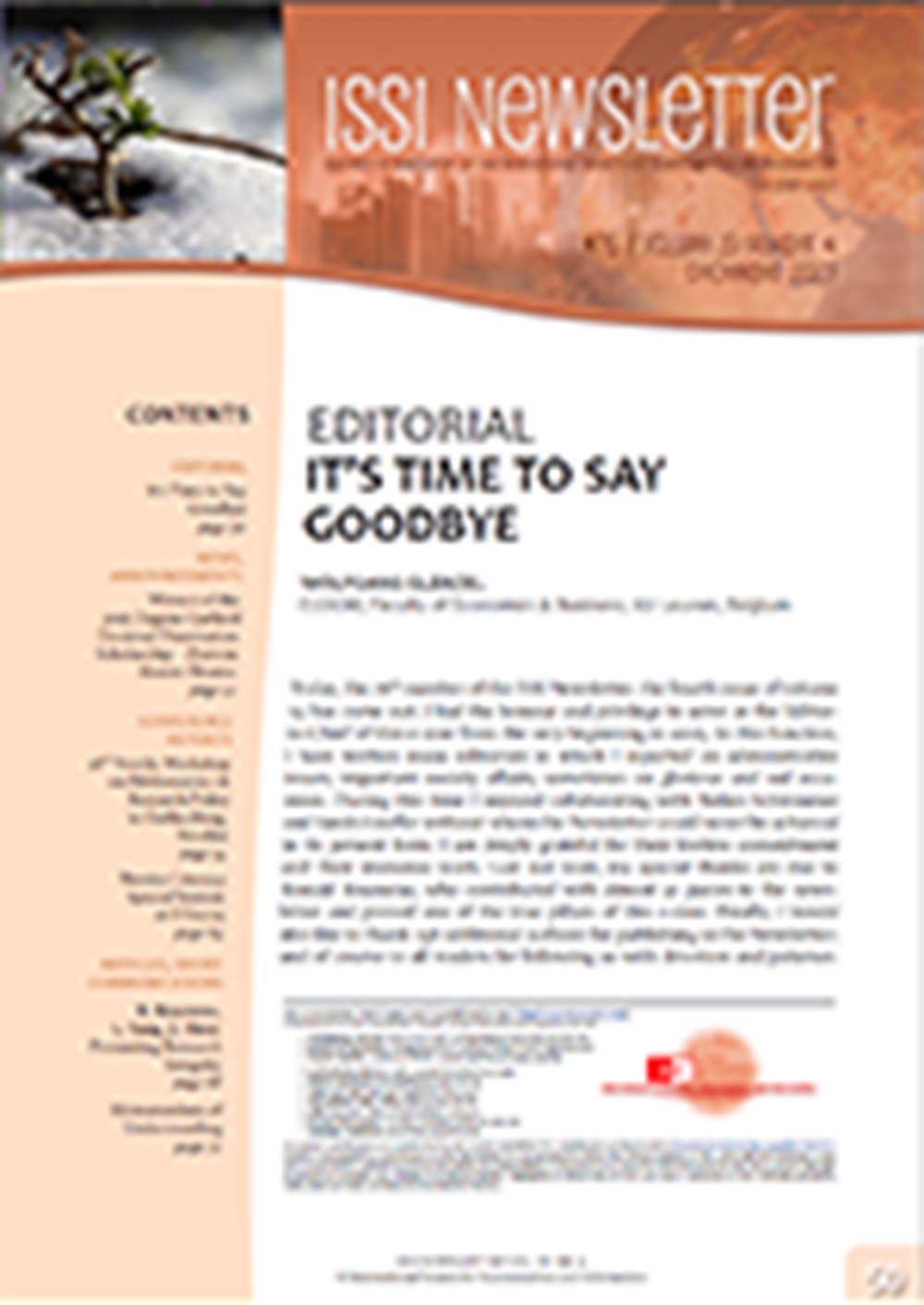 We are glad to inform you that number 76 of the ISSI Newsletter has come out.